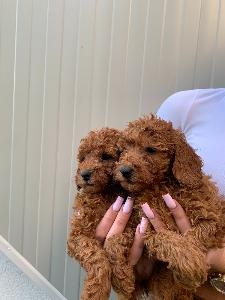 Pudla crveni i aprikot patuljasti stenci